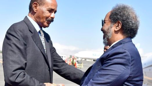 اجتمع الرئيس الصومالي حسن شيخ محمود مع رئيس أريتريا في اسمرا عاصمة أريتريا في زيارةعمل رسمية استغرقت يومين. وقد أصدرت وزارة الإعلام الأريترية بيانا صحفيا نص فيما يلي: “عاد الرئيس حسن شيخ محمود إلى وطنه في ساعات الصباح اليوم مختتماً زيارة العمل...