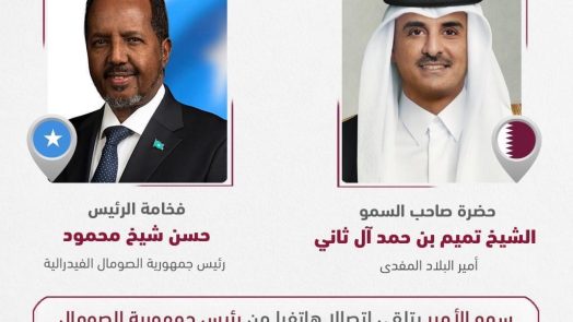 تلقى سمو الأمير تميم بن حمد، سمو أمير دولة قطر اتصالاً هاتفياً من الرئيس الصومالي حسن شيخ محمود، تناول العلاقات الثنائية بين البلدين، وسبل تطوير التعاون المشترك، في مختلف المجالات ويأتي هذا الإتصال بعد توقيع إثيوبيا مذكرة تفاهم مشتركة مع صوماليلاند...