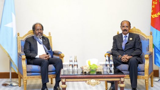 اجتمع الرئيسان حسن شيخ محمود الرئيس الصومالي، و اسياس افورقي رئيس أريتريا في الرياض على هامش القمة العربية الافريقية. وقد تناول المسؤولان القضايا المشتركة، وتفعيل العلاقات الثنائية بين بلديهما وأكد الجانبان ضرورة مواجهة العقبات والقضايا ذات الاهتمام...